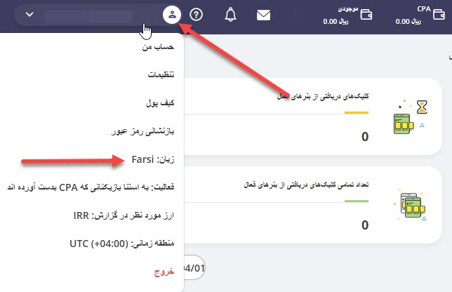 نحوه تغییر زبان پنل نمایندگی در نسخه موبایل